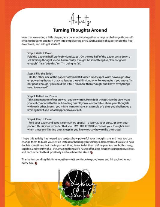 Hey, Ladybug! 🐞 Ready to shake off self-doubt and step into your most confident self? The Ladybug Resources Kit is packed with empowering exercises to boost your self-esteem, embrace your quirks, and challenge those sneaky self-limiting beliefs. Inside, you'll find: